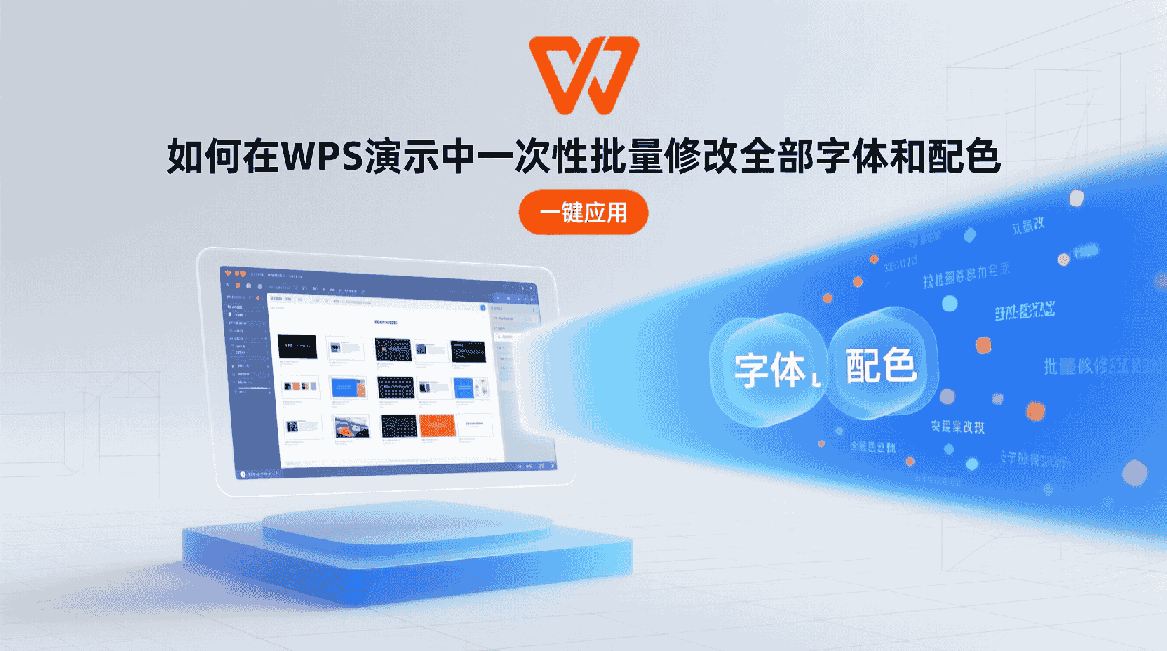 如何在WPS演示中一次性批量修改全部字体和配色?